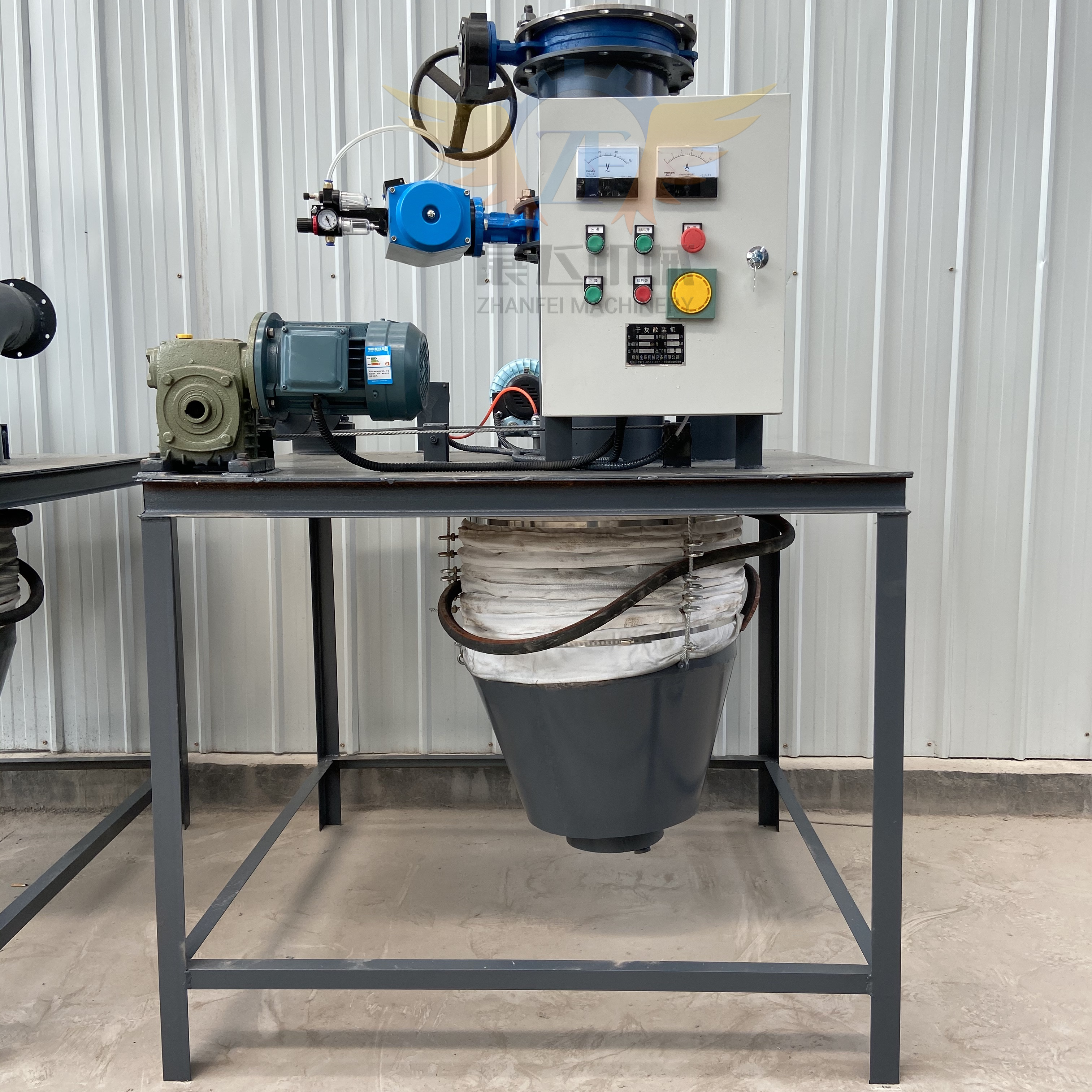 水泥散裝機(jī)由于機(jī)殼采用了雙面斜槽結(jié)構(gòu),左右兩個下機(jī)殼與透氣層構(gòu)成了充氣系統(tǒng),給料斗與機(jī)殼之間,由上機(jī)殼上的壓帶從給料斗上通過并覆蓋在機(jī)殼上,將給料斗與機(jī)殼密封,物料得以通過給料斗、機(jī)殼到達(dá)機(jī)殼中部的卸料口,由裝載頭內(nèi)軟管裝入罐車,從罐車排出的含塵氣體,通過裝載頭外軟管并經(jīng)斜槽上部的空間,從固定的給料斗上的收塵口排入系統(tǒng)收塵器.